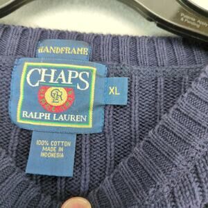 Vtg Chaps Ralph Lauren Pullover Navy Knit Sweater Mens XL Handframe 80s 90s Logo