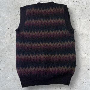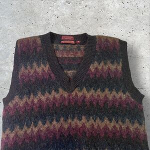 Vtg Chaps Ralph Lauren Shetland Wool Sweater Vest Size Medium Zigzag Pattern Red
