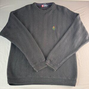 Vtg Chaps Ralph Lauren Sweater Men's XL Black Herringbone Hand Framed Crest Logo