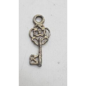 Vtg Charm Pendant Ornate Skeleton Key Filigree Gold Wash New Home Key to Life