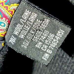 This vintage reversible opera scarf combines practicality with style, featuring a vibrant paisley print on one side and solid black on the other for versatile wear.
