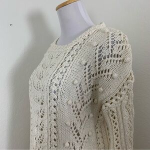 Tags: cottage vintage white ivory 90s hobnail open knit sweater, pullover, mock neck