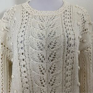 Vtg Chaus Longline Cable Knit Hobnail Sweater Womens M Ramie Cotton Cottage