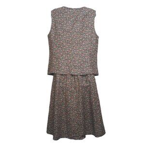 Vtg Chaus Sport Linen Blend Calico Floral Vest Midi Skirt Set 8 Cottagecore Fall
