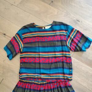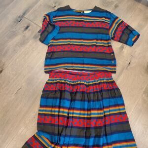 Vtg Chaus Women's Ladies 2 Pc Set Skirt Blouse Stripe Multicolored Size L large