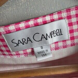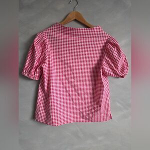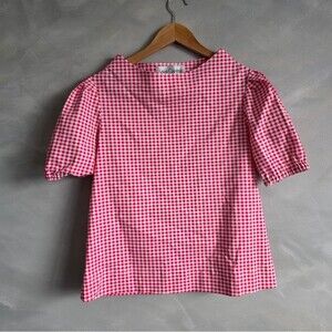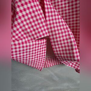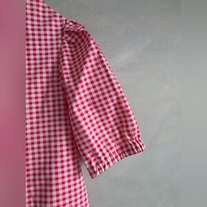 Vtg Checked Gingham Pink White Oktoberfest Cottagecore Short Sleeve Top Sz S