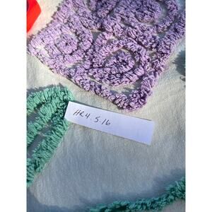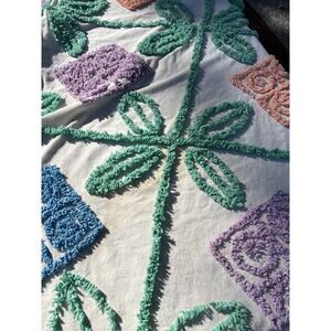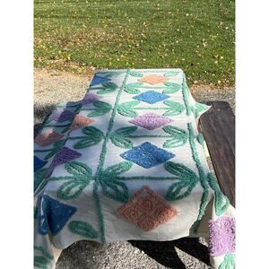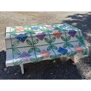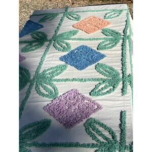 Vtg Chenille Bedspread Coverlet Twin 72x86 Geometric Floral Cottage Farmhouse