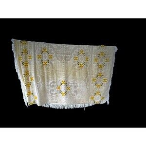 Vtg Chenille Yellow Daisy Flower Bedspread Fringe Edge 97” X 116” Full Sized