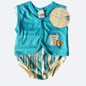 Vtg Cherished Teddies Baby Bodysuit 2 Piece Set Cotton Blue 3 6 9 Months Boy NWT