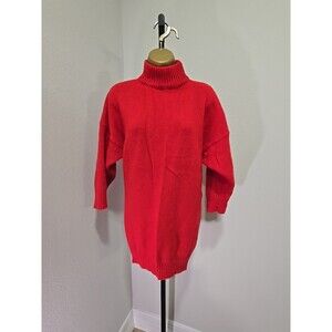 Spiritwear Vintage Cherry Red Shetland Wool Sweater Womens OS Mock Funnel Neck Long Fisherman