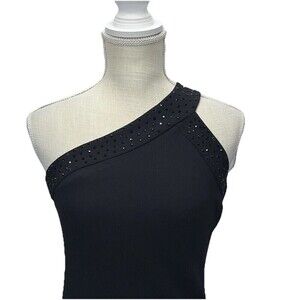 Vtg Chetta B Sherrie Bloom Peter Noviello Black One Shoulder Dress 4 Rhinestone
