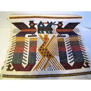 Description: Vintage Chichicastenango Textiles Table Runner Hand Stitched Scandinavian Folk Art 50x18