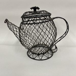 Vintage Farmhouse Country Wire Teapot Form Kitchen Decor * This item is old and shows some flaws and wear. Please see photos * Wire on bottom is detaching from base Measurements in Photos