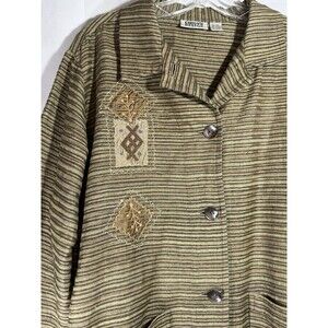 Vtg. Chico Design Brown Embroidered 100% Silk Button L/S Jacket Size 3 XL/16