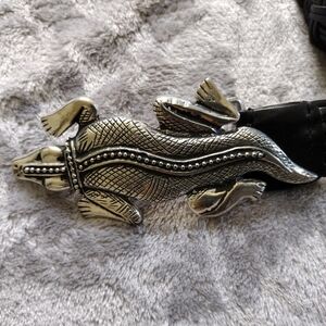 Vtg Chico's Belt Women's M / L Black Braided Woven Silver Crocodile Buckle Y2K