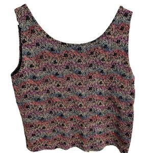 Vtg Chicos Design Tank Womens 1 Knit Floral Flower Motif Scoopneck Eclectic Gran