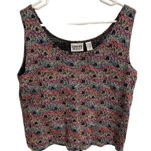 Vtg Chicos Design Tank Womens 1 Knit Floral Flower Motif Scoopneck Eclectic Grandma