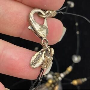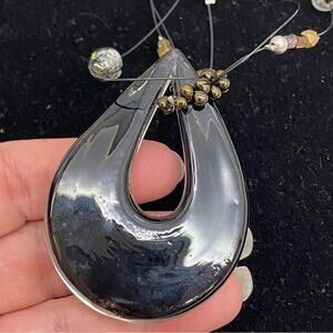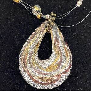 Vtg Chico's Dichroic Glass Metal Medallion Pendant Stranded Wire Bib Necklace