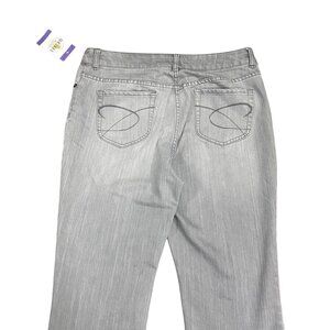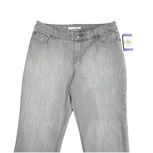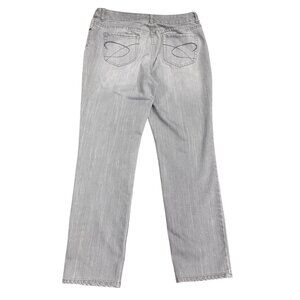 Step into timeless style with these Chico’s Platinum straight-leg jeans in versatile gray, designed in Chico’s size 2 (equivalent to US women’s size 12 or a large). Featuring a flattering high-rise fit and classic straight silhouette, these jeans combine comfort and polish. The soft cotton blend with added stretch ensures ease of movement, while understated pocket stitching adds subtle detail.