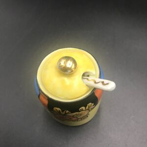 This vintage Chikaramachi LusterWare condiment set is a beautiful addition to any kitchen or dining room. Made in Japan, this set includes a salt and pepper shaker, mustard bottle, spoon, and tray. The brand is known for its quality and attention to detail, making this set a true collector's item. With its unique design and intricate patterns, this Chikaramachi LusterWare condiment set is sure to impress your guests. Whether you're using it for a special occasion or just to add some flair to your everyday meals, this set is a must-have for any food lover. Don't miss out on the chance to own this stunning piece of dinnerware history.