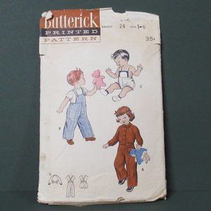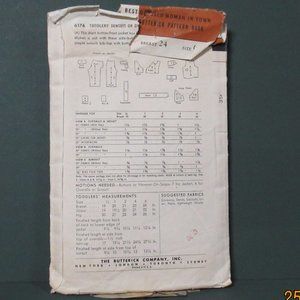 Vintage Butterick pattern #6176 for a child's sunsuit, overalls and jacket. Size 6, Breast 24".
