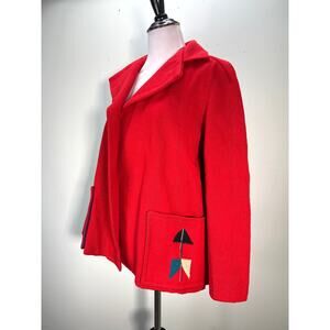 Vtg Chimayo Jacket Medium Red Multicolor Hand Woven Wool Southwest Americana 40s