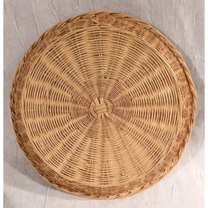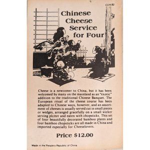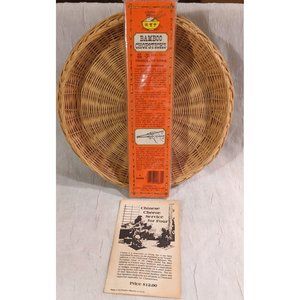 Vtg Chinese Cheese Bamboo Wicker Plates Chopsticks Service for 4 Platter Boho