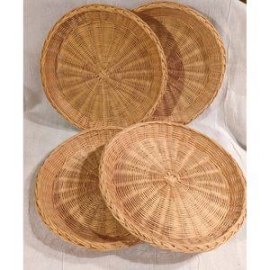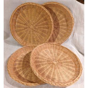 Set of 4 bamboo wicker plates / platters, & set of 4 bamboo chopsticks, as well as the information sheet about these products.