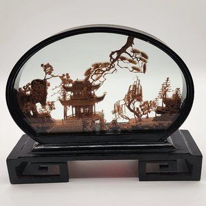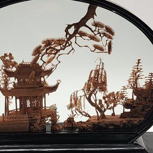 Vintage Chinese Asian SAN YOU Diorama Cork Carving