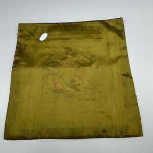 Vtg Chinese Silk Art Embroidered Square Green Frameable Panel Ducks on Lily Pond