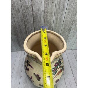 Vtg Chinese Tropical Birds and Floral Decor Pitcher Ceramic with Handle 10" Tall