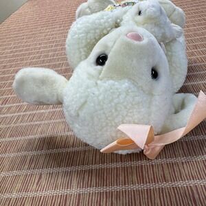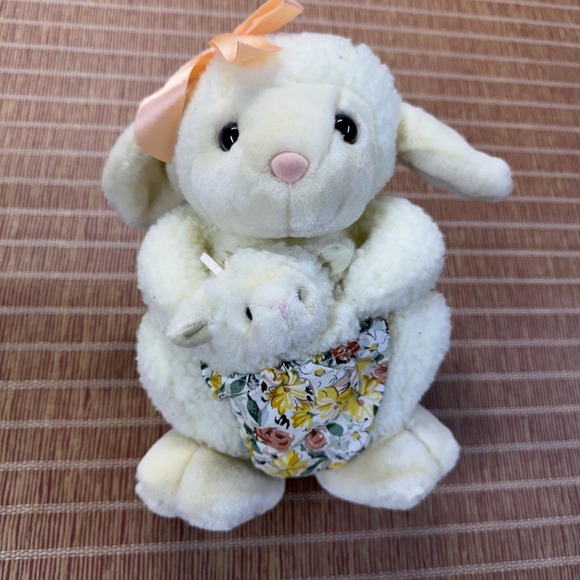 Vtg Chosun Lamb Plush Stuffed Animal Mom & Baby Floral Pouch Sheep Pretend Play
