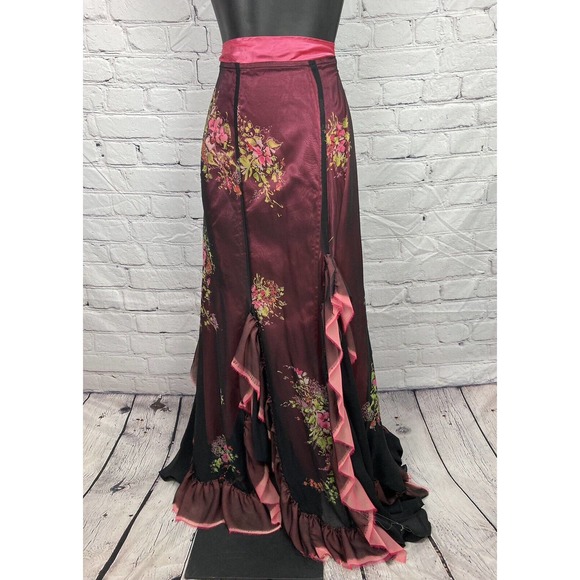 Vtg Chris Hudson Haute Couture Custom Floral Oriental Maxi Mermaid Skirt. Local designer in Madison, GA. Some flaws on under layer of skirt. Please see pictures.