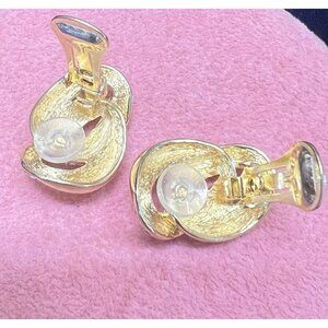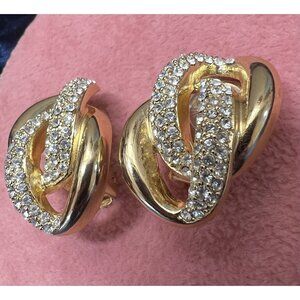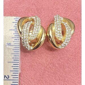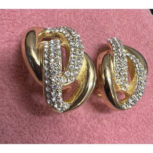 Vtg Christian Dior Earrings Signed Rhinestone Gold tone Runway Statement Clip On