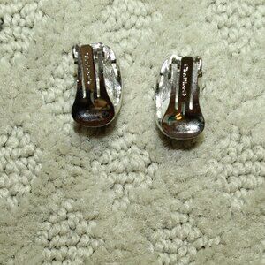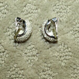 Vtg Christian Dior Pave Crystal Rhinestone Silver-Tone Half Hoop Clip Earrings