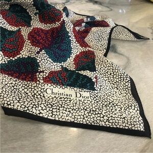 Vtg Christian Dior Silk Scarf Logo Fall Leaves Classic Echarpes 34 X 34 square