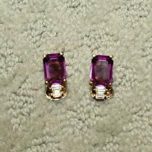 Vtg Christian Dior Simulated Amethyst Rhinestone Clip On Earrings 1980s Signed