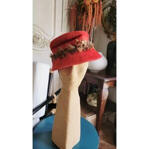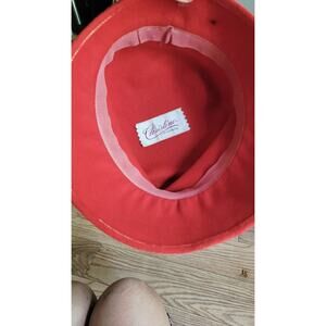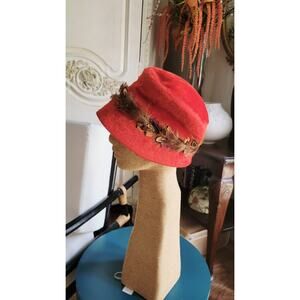 Vtg Christine Originals Park Ave NY Red Faux Fur Cloche Hat Feathers Sz S