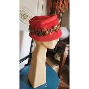 This Vtg Christine Originals Park Ave NY Red Faux Fur Cloche Hat is a vintage accessory from the 1960s, made in the United States. With a chic and stylish look, this original piece features feathers and is crafted from 100% wool. Perfect for everyday wear, this size small hat in a bold red color exudes a classic and feminine vibe, making it a standout addition to any wardrobe.