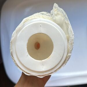 Vtg Christmas Angel tree topper dressed all in white with strawberry blond hair