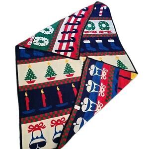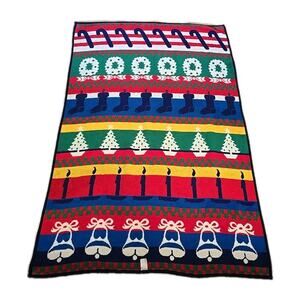 Vtg Christmas Blanket San Marcos Reversible Festive Holiday Cozy Cabin 55"x83"