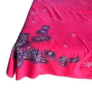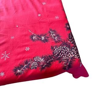 Vtg Christmas CALIFORNIA HAND PRINTS Tablecloth circa 1950's 50" x 52" Red Gold