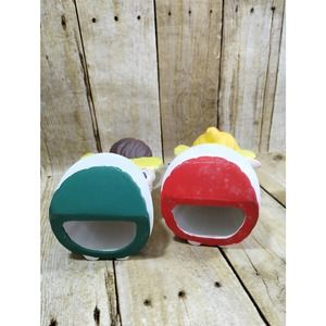 Vtg Christmas Ceramic Angels Set of 2 Holiday Decoration (lr)
