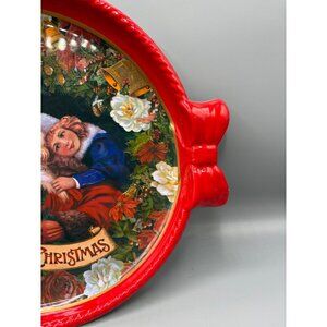 Vtg Christmas Deluxe St Nick Bow Crystal Finish Serving Tray Cookies Plastic