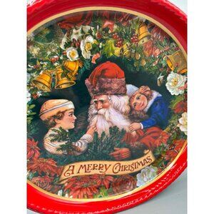 Festive tray depicting Santa with children, perfect for holiday gatherings and decor.