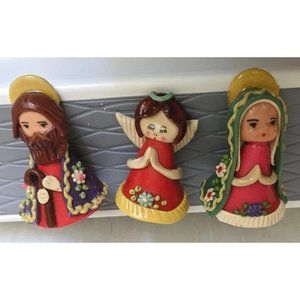 Vtg Christmas Nativity Figures Clay Painted Mary Joseph Angel Naive Folk Art Lot
