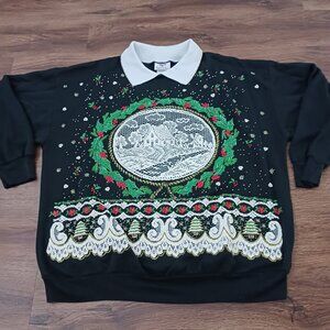 Vtg Christmas Nutcracker Black Sweatshirt Cottagecore Grandma Ugly Size L