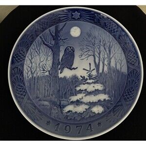 Vtg Christmas Plate Royal Copenhagen RC Year 1974 Winter Twilight Owl Tree 7"