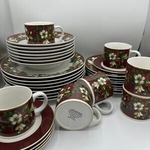 Vtg Christmas Salad Plates in Splendor Burgundy Pattern by Sakura 2002-04