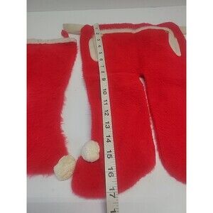 Vtg Christmas Stocking Red Faux Fur Santa Pants Longjohn Pom Pom Feet 17” 13"